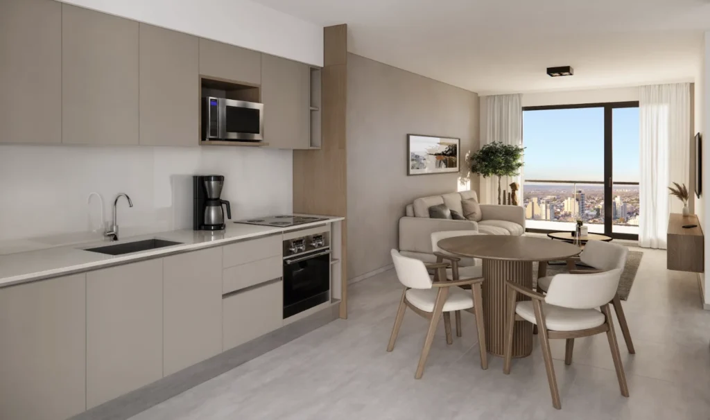 Ubicado en Santiago del Estero 642, este edificio contará con 264 departamentos, incluyendo monoambientes y unidades de uno y dos dormitorios. En planta baja tendrá un local comercial de tres niveles, una oficina y un basamento de cocheras con rampas de hormigón, con un total de 105 espacios de estacionamiento.